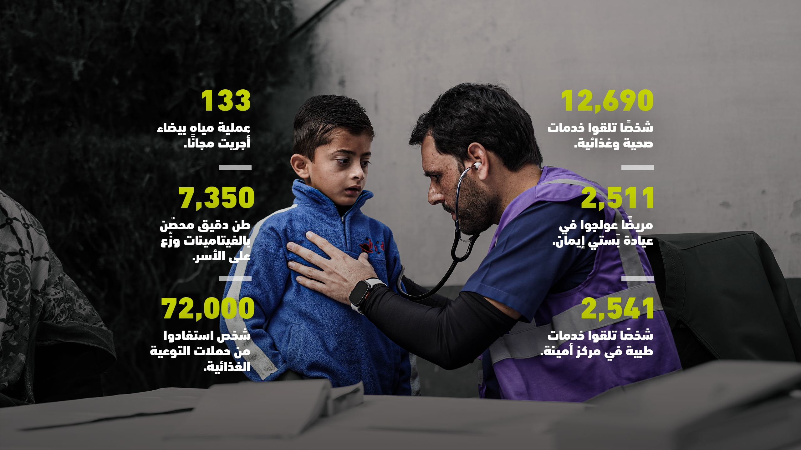 - 2,990 أسرة استفادت من مساعدات الشتاء (قرابة 19,400 شخصًا).