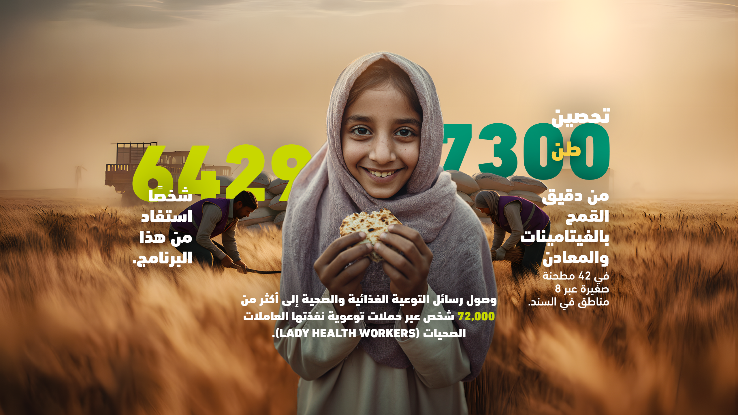 - الأمن الغذائي يشكّل أحد أكبر التحديات في باكستان، حيث يعيش أكثر من 20% من السكان في حالة سوء تغذية، ويعاني ما يقارب 44% من الأطفال دون سن الخامسة من التقزّم.